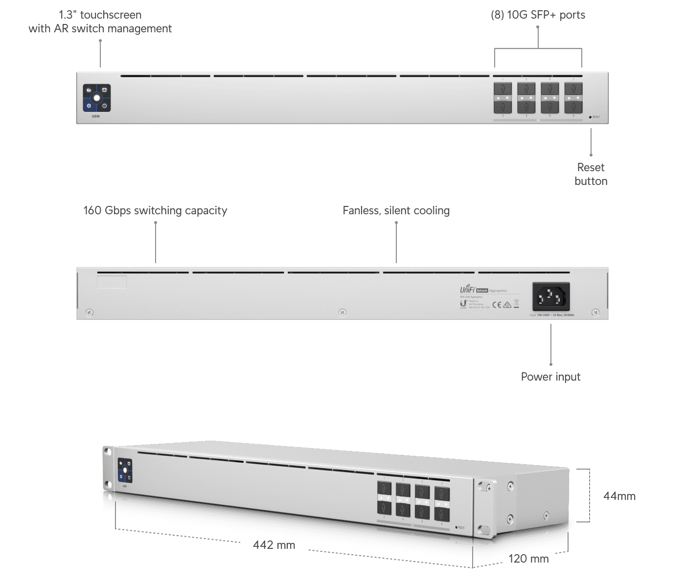An 8-port, Layer 2 switch made for 10G SFP+ connections.