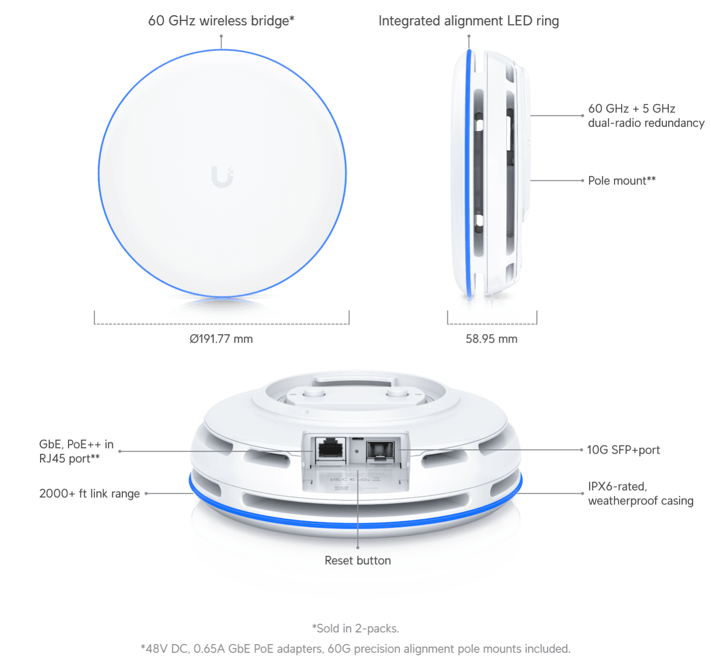 A 60 GHz wireless point-to-point bridge with 10G SFP+ uplink for maximum performance.