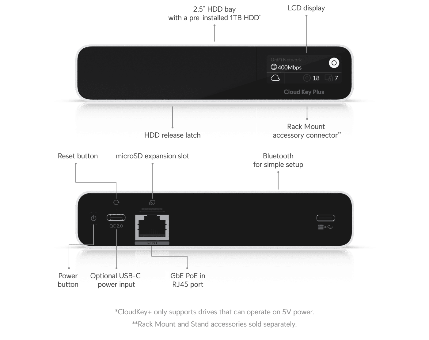Optional USB-C power with Quick Charge 2.0/3.0 compliant adapter only