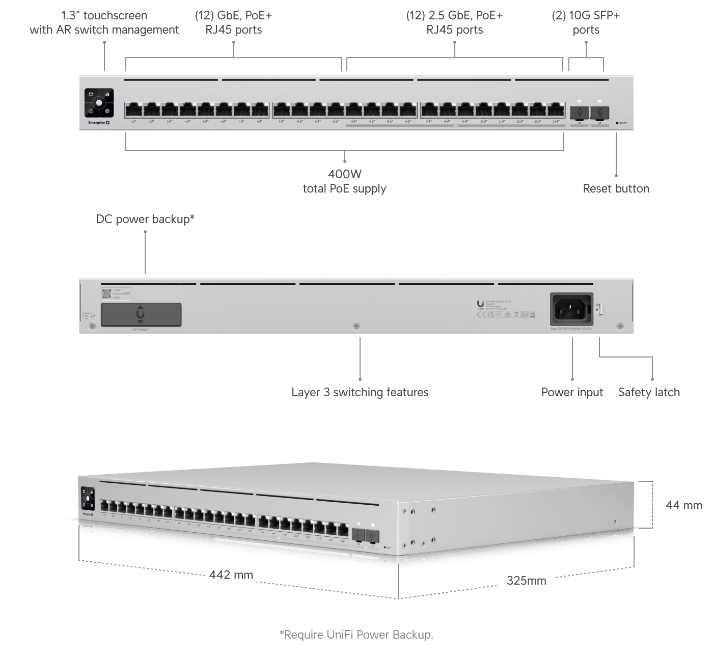 (12) 2.5 GbE, (12) GbE; all PoE+ ports