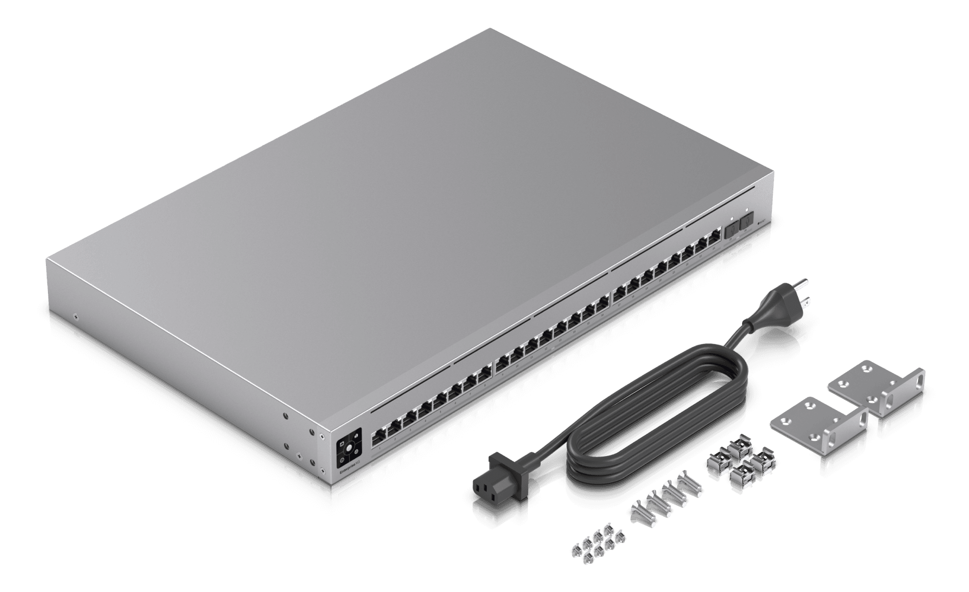 A 24-port, Layer 3 switch capable of supporting high-capacity 10 GbE RJ45 and 25G SFP28 connections.