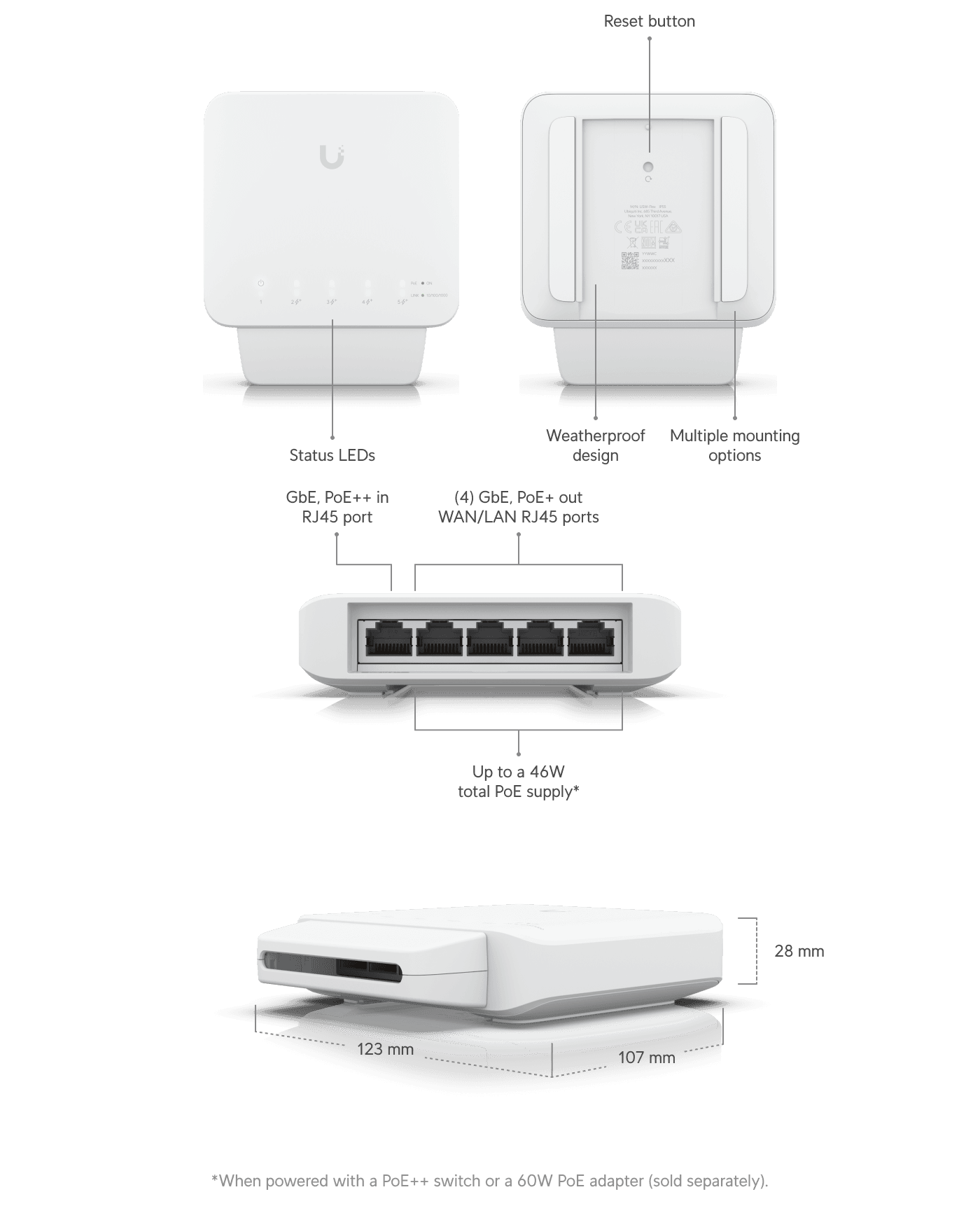 *When powered with a PoE++ switch or a 60W PoE adapter (sold separately).