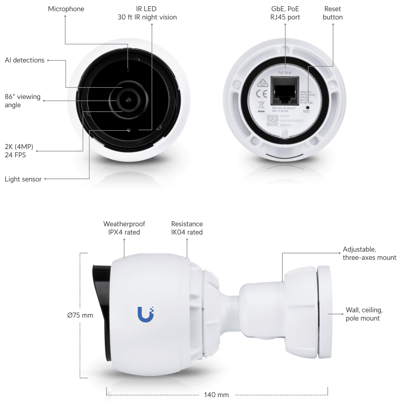 Indoor/outdoor PoE camera designed to provide optimal nighttime surveillance.