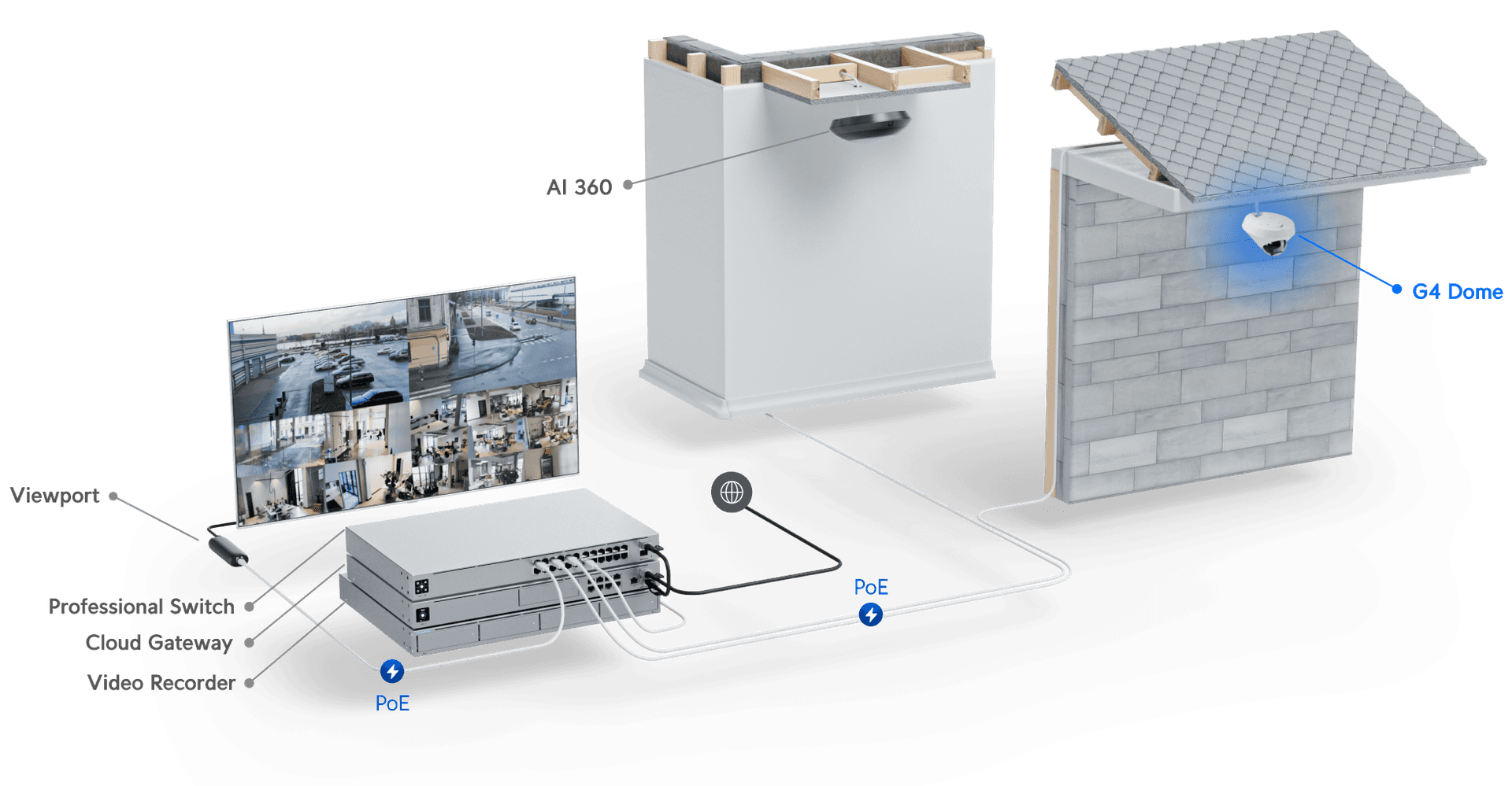 Connect and power using PoE