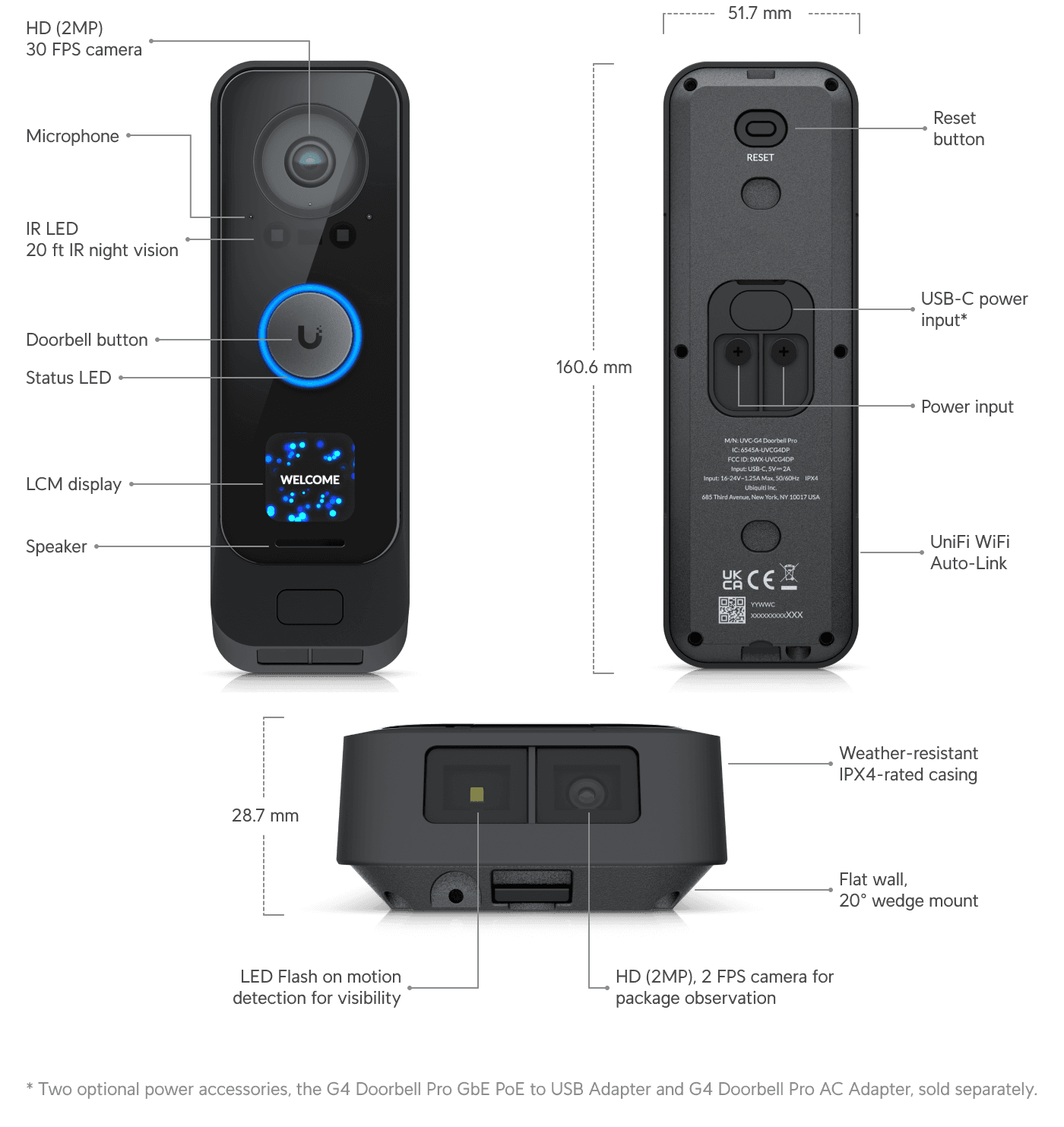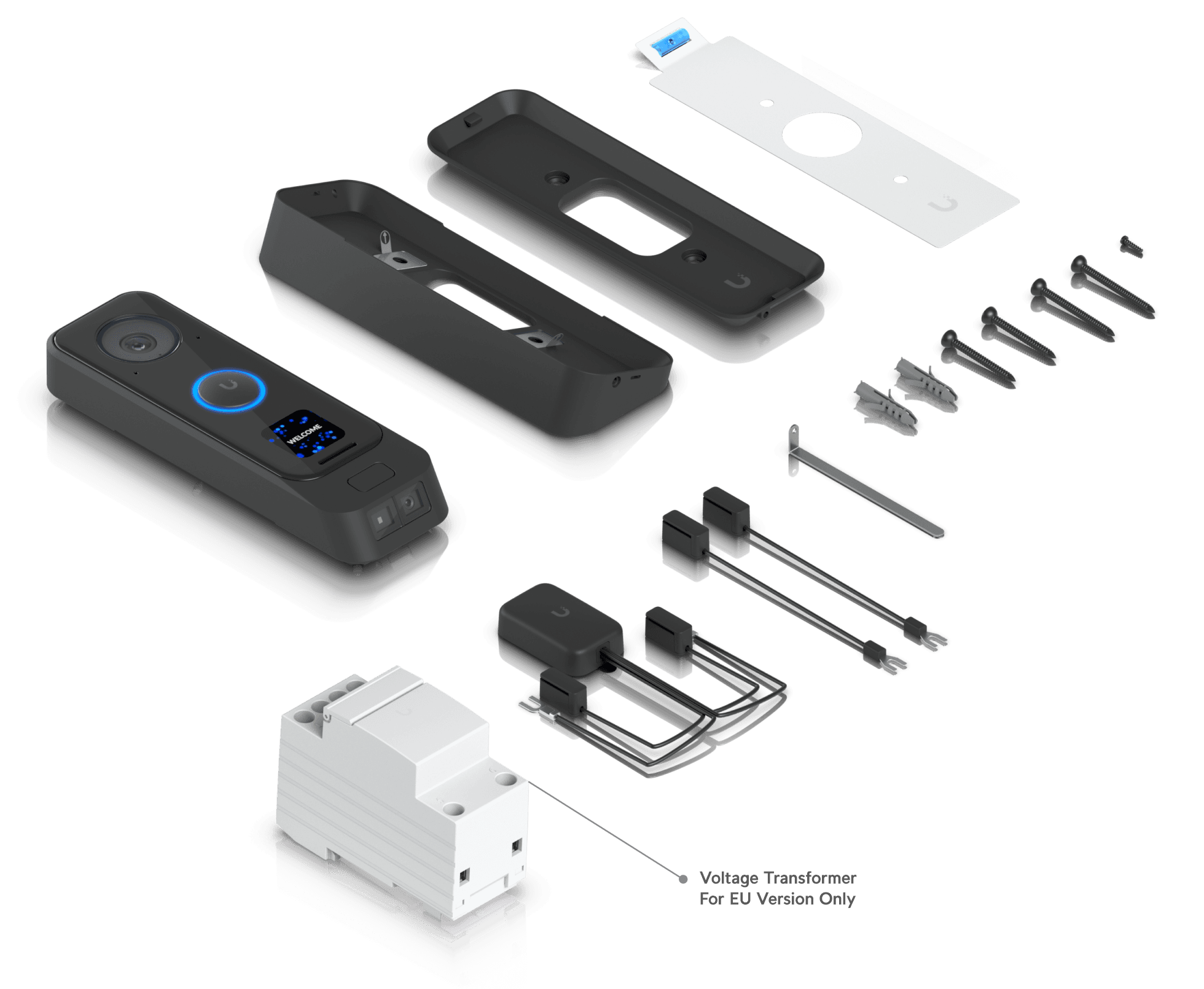 Premium UniFi doorbell with an enhanced package detection camera and integrated display.
