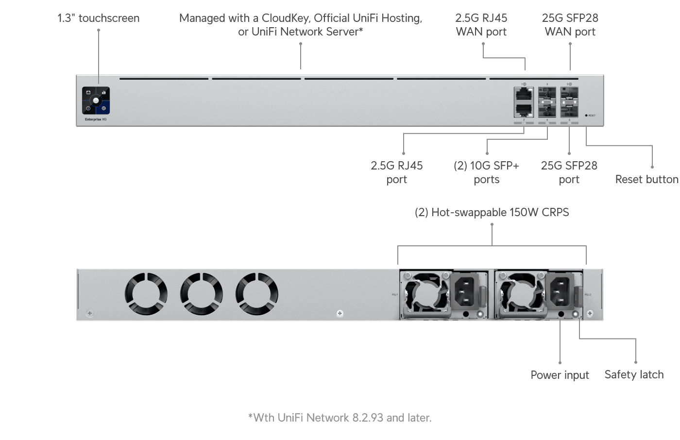 Managed with a CloudKey, Official UniFi Hosting, or UniFi Network Server with UniFi Network 8.3.32 and later