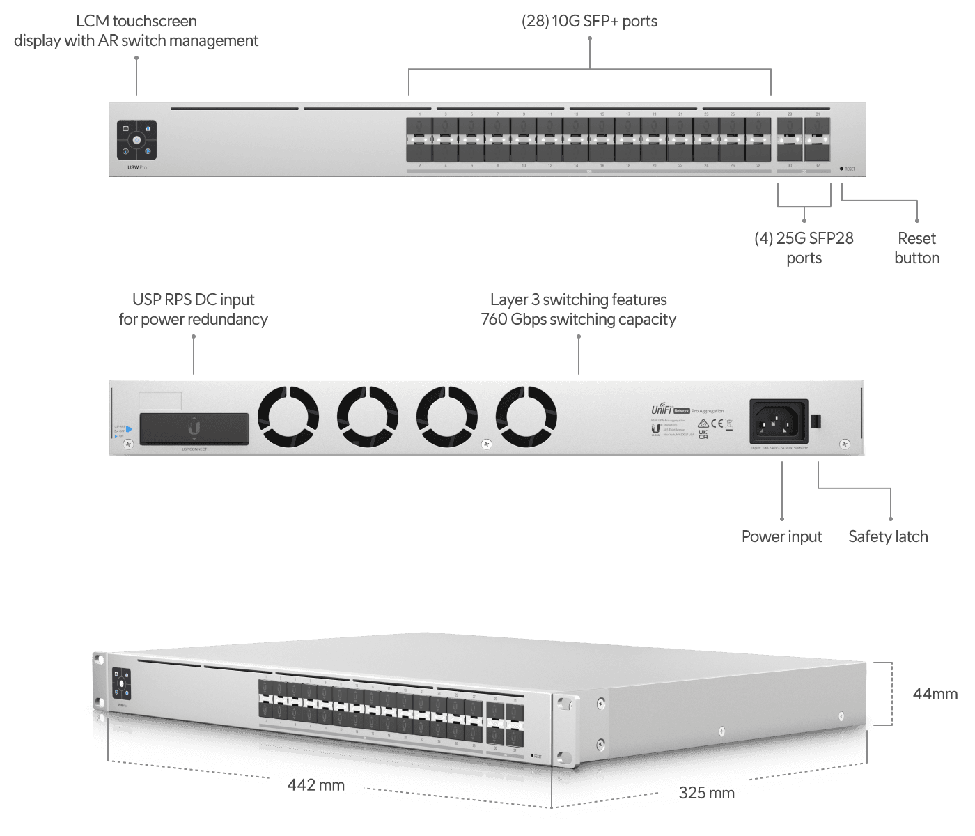 A 32-port, Layer 3 switch made for high-capacity 10G SFP+ and 25G SFP28 connections.