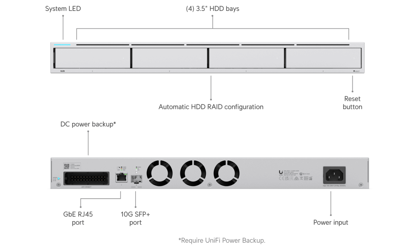 A video recorder with (4) 2.5/3.5″ HDD bays that can support up to 30 days of storage for (18) 4K cameras or (60) Full HD cameras.