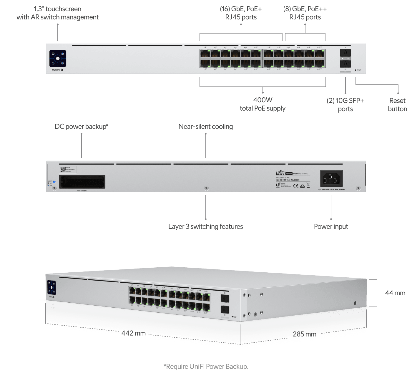 (16) GbE PoE+, (8) GbE PoE++ ports