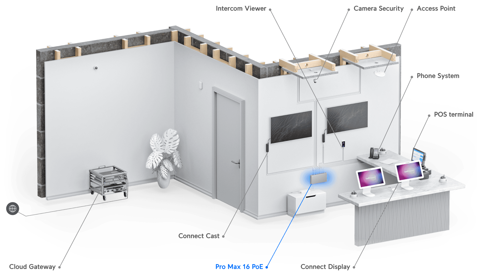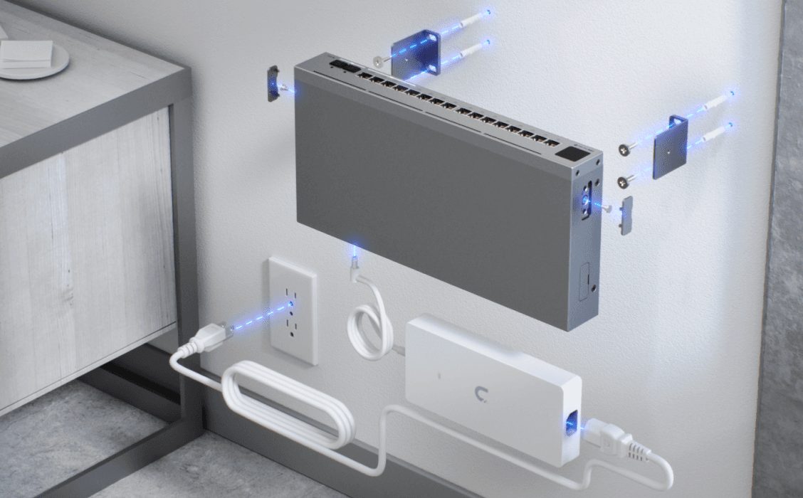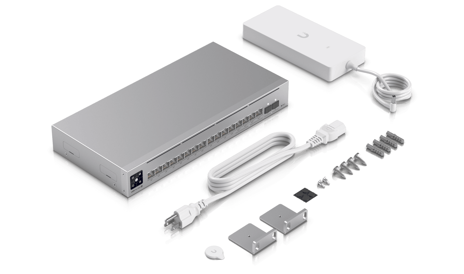A 16-port, Layer 3 Etherlighting™ switch with 2.5 GbE, PoE++ output, and versatile mounting options.