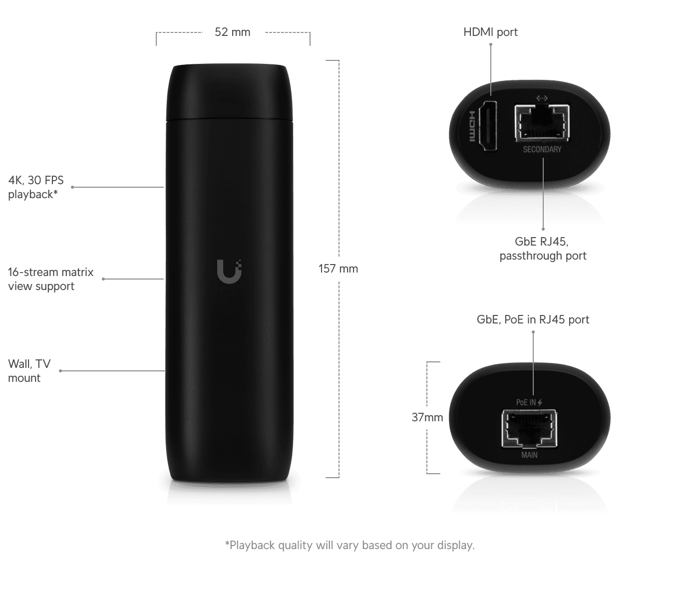 Easy-to-use hub for viewing Protect camera feeds on an HDMI display.