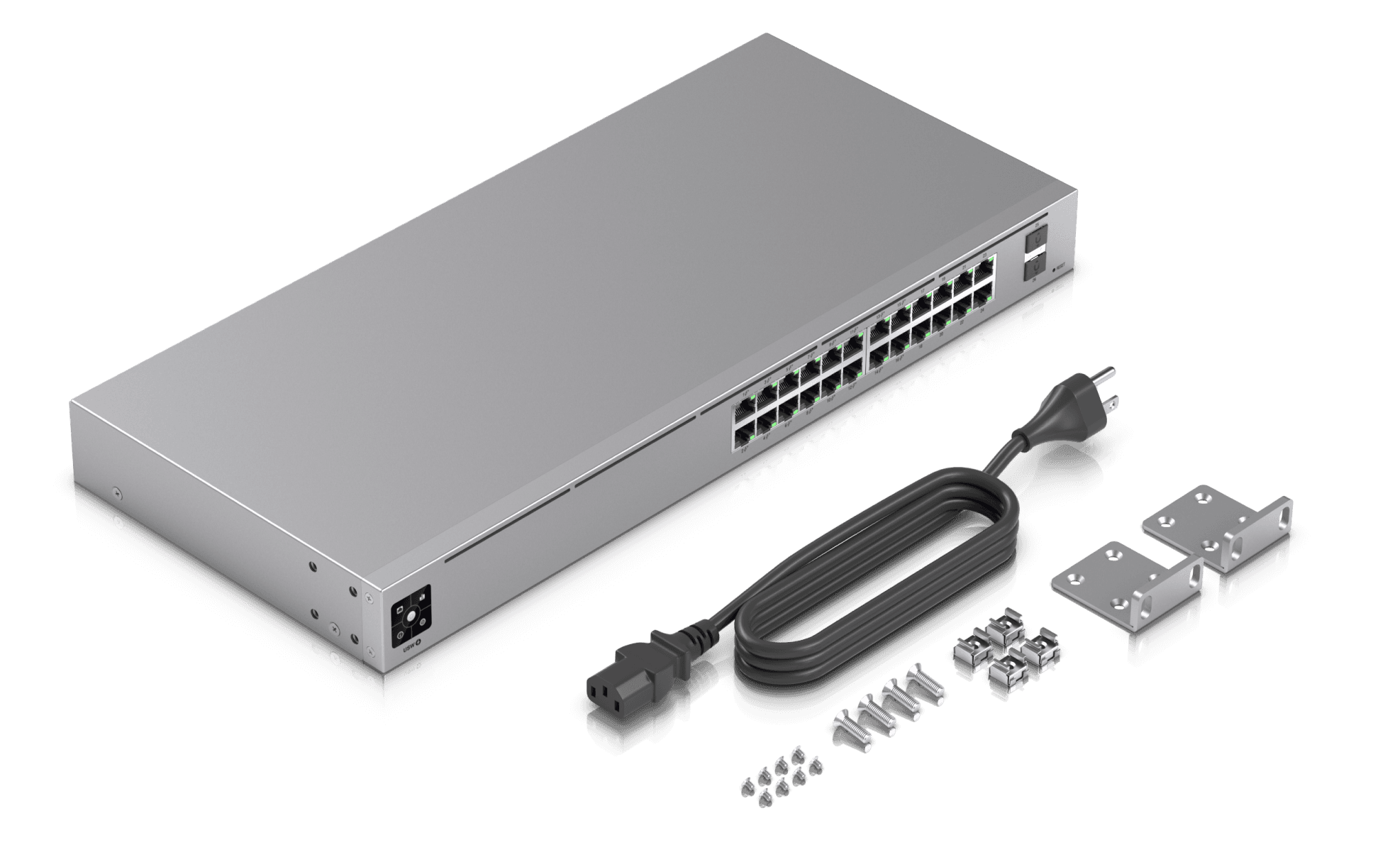 Professional-grade, Layer 3 Etherlighting™ switch with (2) 10 GbE, (22) 2.5 GbE, and (4) 10G SFP+ ports.