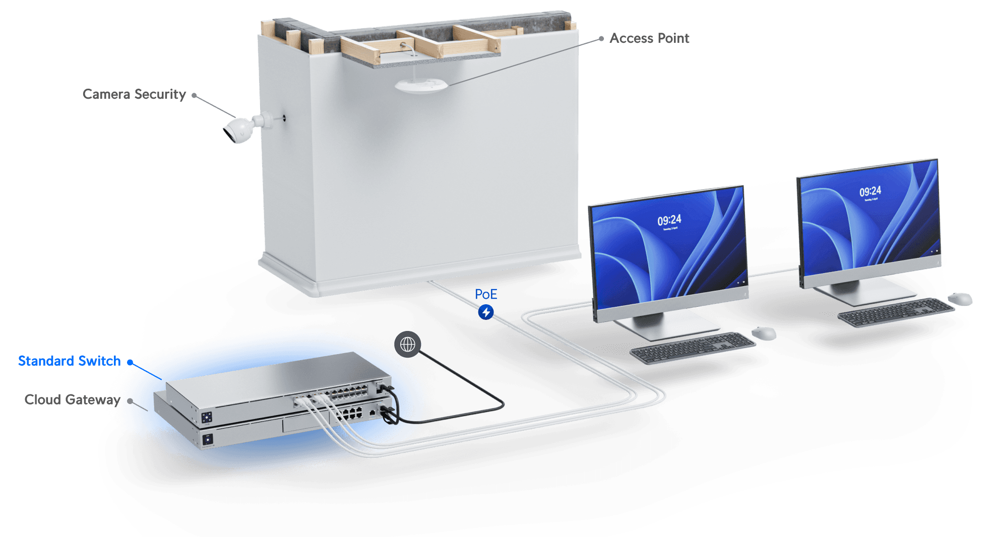 A 24-port, Layer 2 PoE switch with a fanless cooling system.