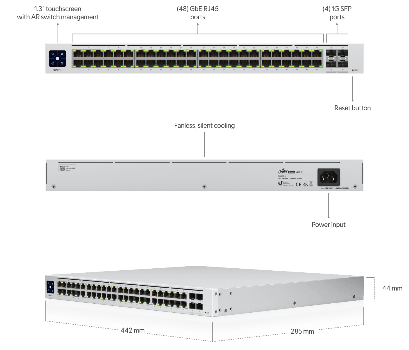 A 48-port, Layer 2 switch with a silent, fanless cooling system.